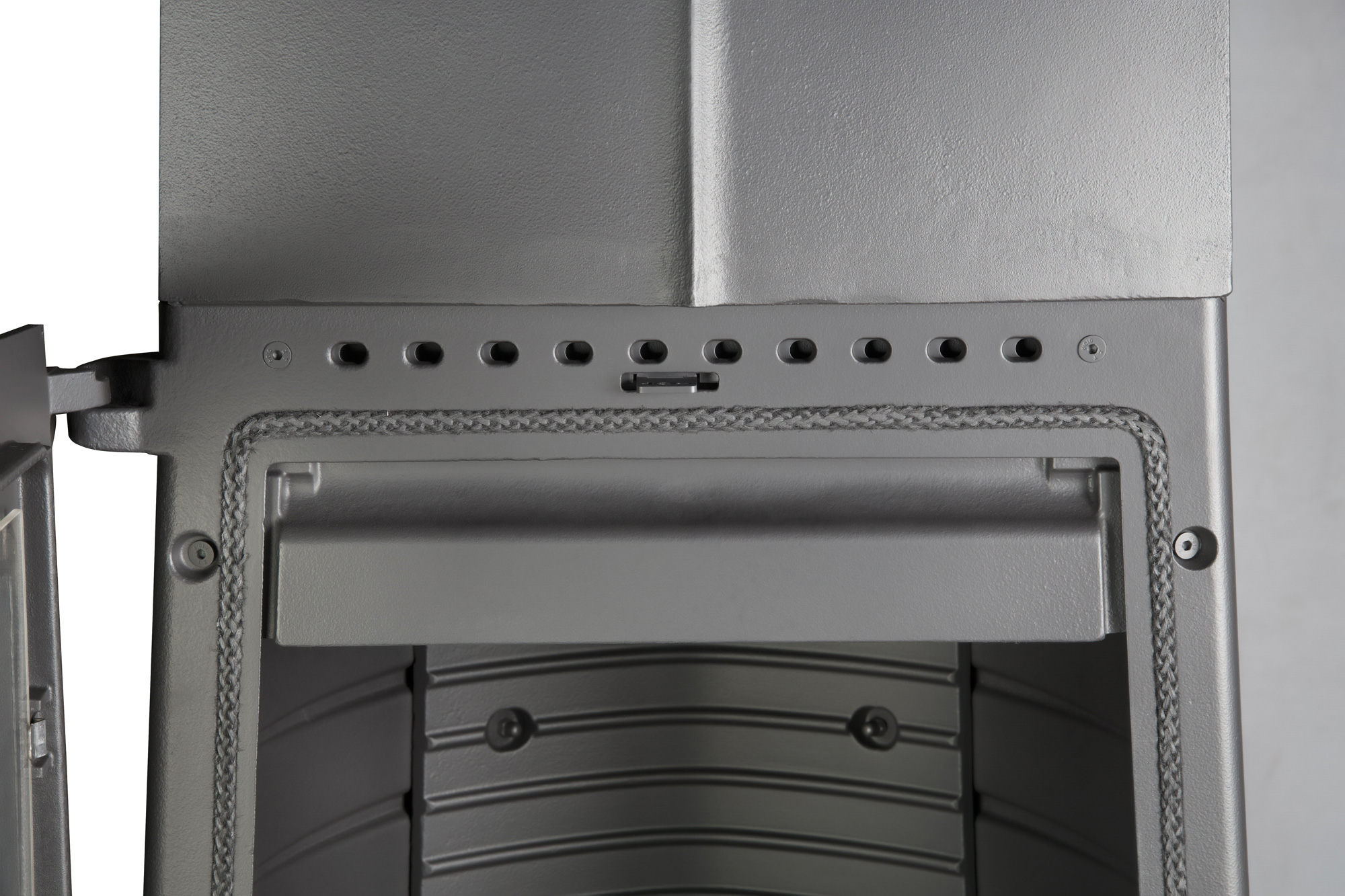 Камин оснащен зольником для удобной очистки и обладает высоким коэффициентом полезного действия (КПД) на уровне 79%, что гарантирует эффективное использование топлива и экономию энергии. Вторичный дожиг дает возможность максимально использовать потенциал дров, обеспечивая длительное время горения.