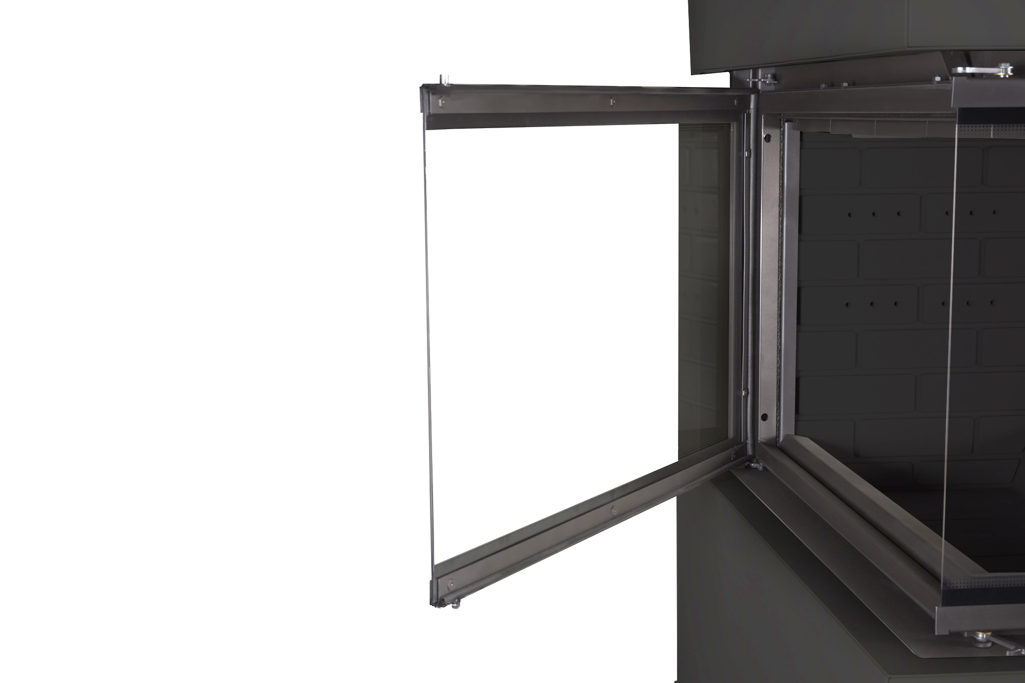 Камин оборудован вторичным дожигом, что способствует повышению эффективности сгорания и снижению выбросов. Благодаря высокому КПД в 80%, он экономичен в использовании и позволяет сэкономить на затратах на отопление.